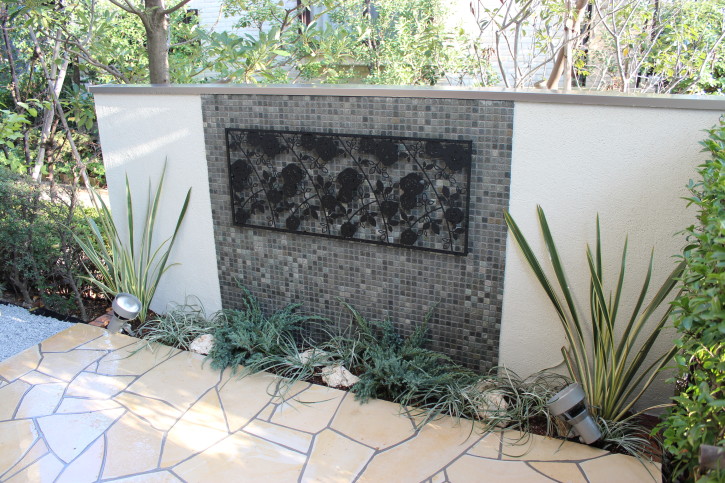浦安市にてお庭のリフォームを承りました。テラス空間とそこへつづくアプローチの施工です。コンセプトである高級感を演出するために上質な素材を使用して仕上げました。